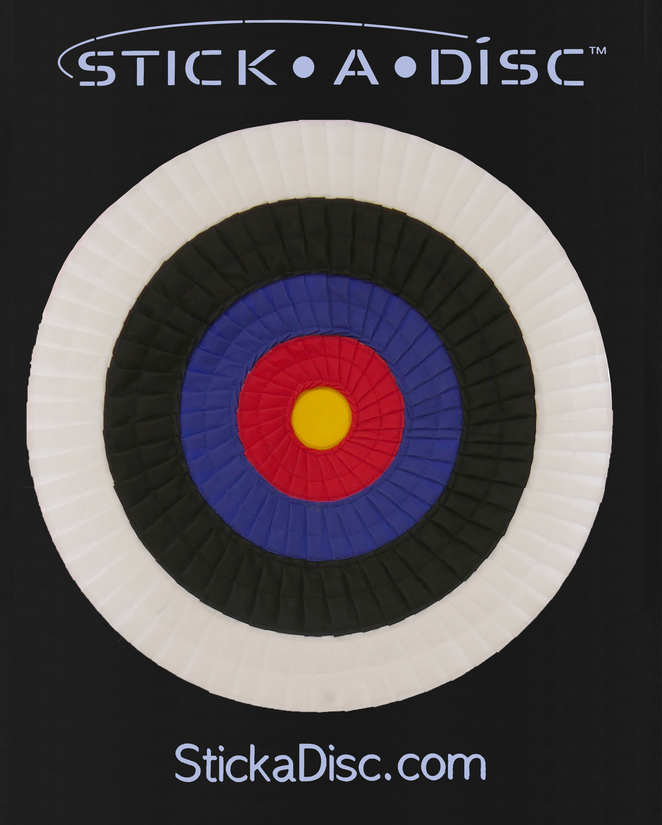 Stick-A-Disc is a new way Global Archery has found to have fun and contest friends' marksmanship in an indoor environment. This new way to play is more cost efficient and is much safer.